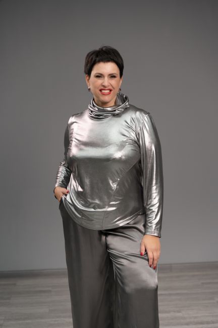 Высота горловины подойдет для любой длины шеи, при этом она не будет казаться короче. Также горловина не изменяет пропорций лица.