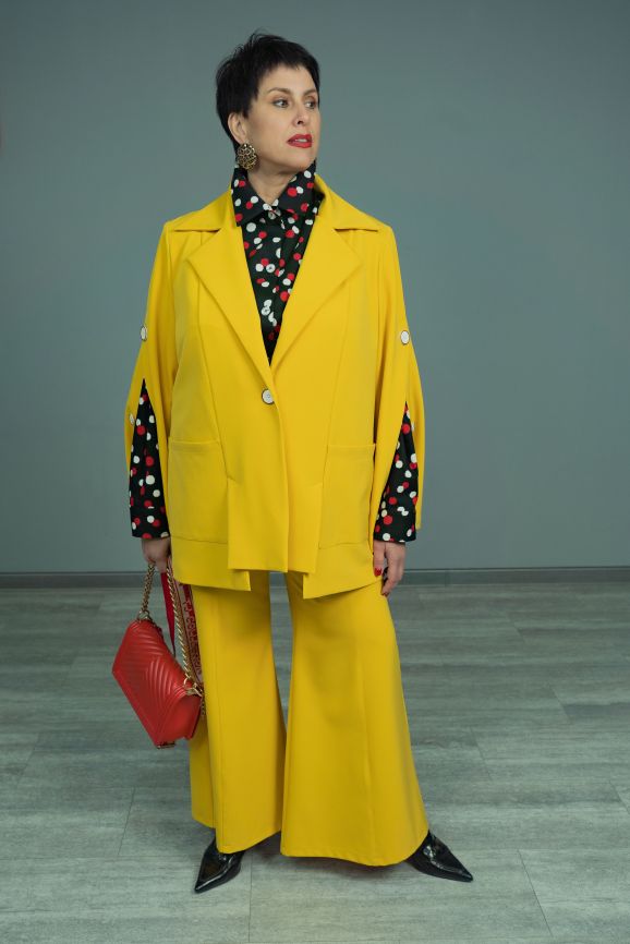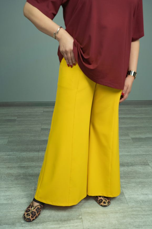 Не узкие, не широкие - идеально выверенные пропорции специально для женщин роскошных форм! Кокетка и резинка пояса очень комфортны при колебаниях веса. Центральный вертикальный шов на передних половинках брюк вытягивает силуэт.
