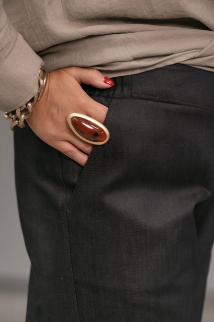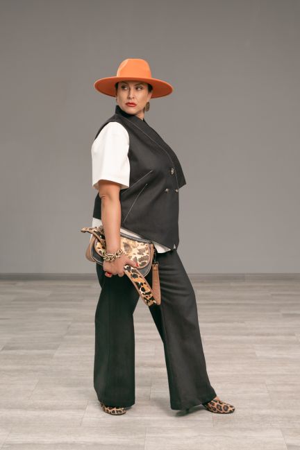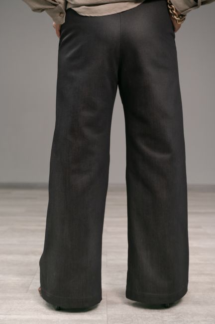 Брюки-трубы из джинсы. Небольшой клеш к низу в стиле 70-х годов придаёт дополнительный шарм этой модели. Идеальная посадка этих брюк позволяет носить заправленный в них верх - рубашки, топы, водолазки. Смелый крой не только интересный, но и комфортный. Не создавая дополнительного объема, он мягко облегает и держит живот. Резинка по талии создаёт комфорт дыхания. Даже если вы вкусили кусочек тортика, это не будет заметно ни вам, ни окружающим