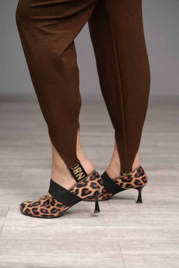 Леггинсы со штрипкой коричневые люрекс