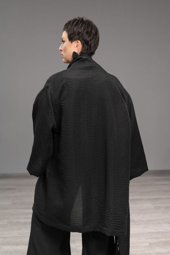 - Кимоно хорошо держит форму. Базовый фасон из ткани с анималистичным принтом