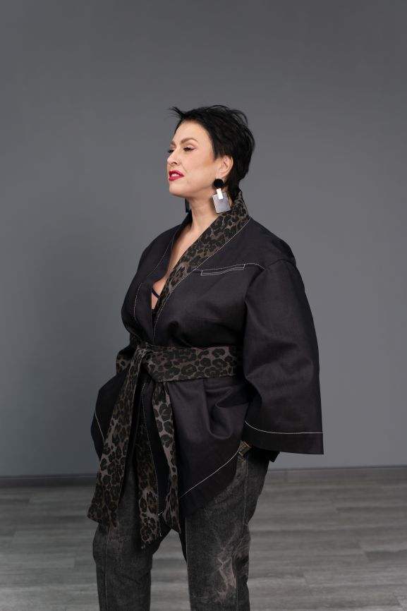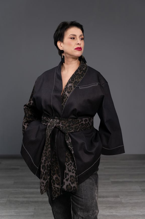Кимоно джинсовое леопард