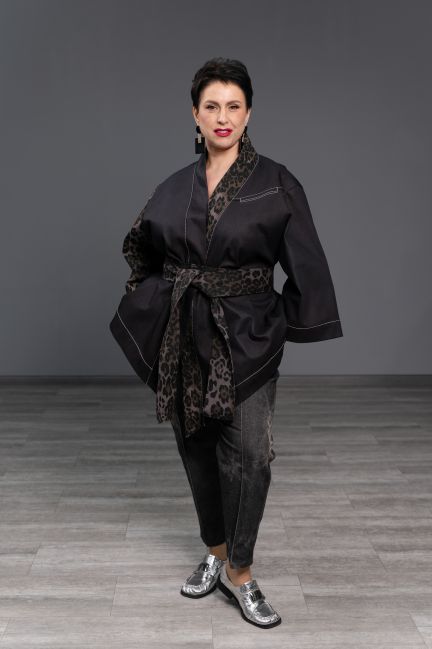 Кимоно с уровнем комфорта Люкс. Продуманная композиция изделия украшает любую фигуру. Конструкция создана с учётом эргономики движения женщины, дыхания её великолепной груди. Вы можете носить эту шикарную вещь с поясом в японском стиле или без него, застегнув на кнопку. Даже нараспашку кимоно не будет сползать! Для этого в его конструкцию вложены специальные участки влажно-тепловой обработки и планка изделия всегда будет мягко, но чётко лежать по вашей фигуре. Асимметричный низ деликатно прикрывает пах. Красиво застроченные складочки на спинке специально расположены "на взлёт", сокращая объем спины. Удобный рукав позволяет носить кимоно в любых вариантах - на голое тело, с водолазкой, топом, свитером. Объем кимоно настолько продуман, что садится на множество размеров, по новому украшая каждую обладательницу.