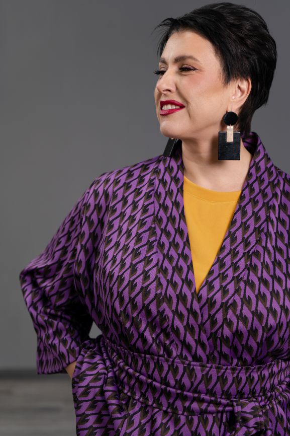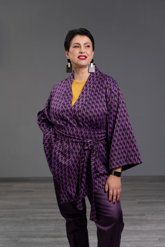 Кимоно с уровнем комфорта Люкс. Продуманная композиция изделия украшает любую фигуру. Конструкция создана с учётом эргономики движения женщины, дыхания её великолепной груди. Вы можете носить эту шикарную вещь с поясом в японском стиле или без него, застегнув на кнопку. Даже нараспашку кимоно не будет сползать! Для этого в его конструкцию вложены специальные участки влажно-тепловой обработки и планка изделия всегда будет мягко, но чётко лежать по вашей фигуре. Асимметричный низ деликатно прикрывает пах. Красиво застроченные складочки на спинке специально расположены "на взлёт", сокращая объем спины. Удобный рукав позволяет носить кимоно в любых вариантах - на голое тело, с водолазкой, топом, свитером. Объем кимоно настолько продуман, что садится на множество размеров, по новому украшая каждую обладательницу.