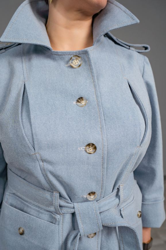 · Нагрудные, плечевые и талиевые вытачки заведены в рельефы по полочкам и спинке, что делает силуэт прилегающим. В рельефах полочек заложены изящные встречные складки, которые дают дополнительную свободу шикарной женской груди.