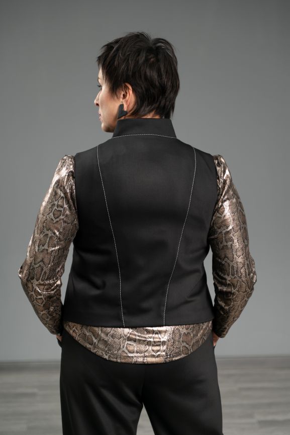 Образ: жилет, водолазка коричневая и зауженные брюки