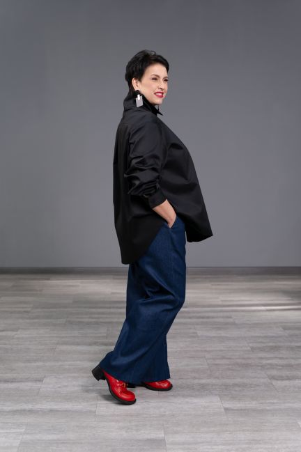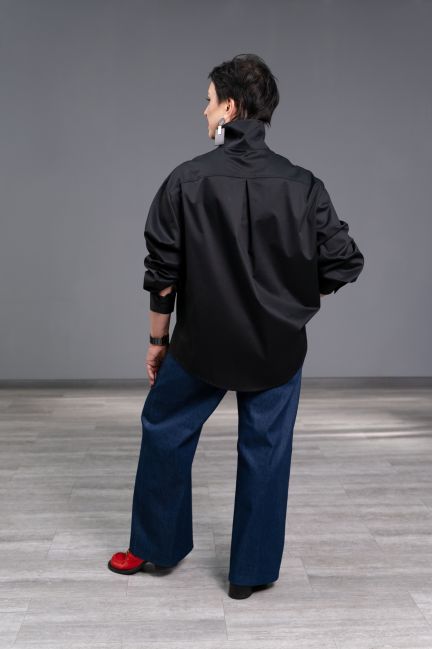 На нашей рубашке есть нагрудная вытачка, которая позволяет не просто вместиться грудь, но и правильно подчеркнуть талию.