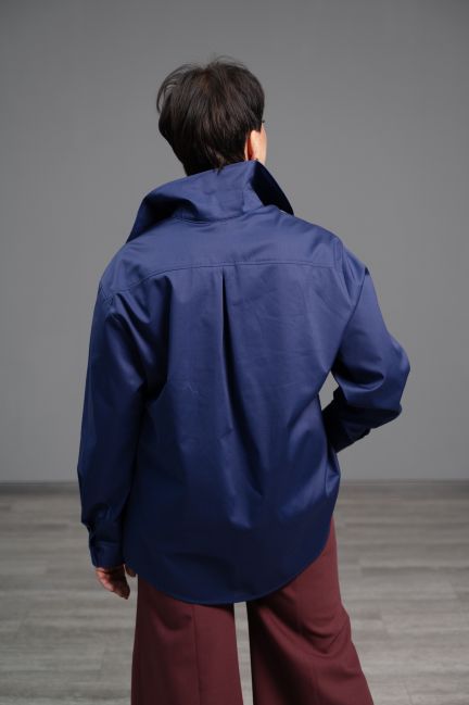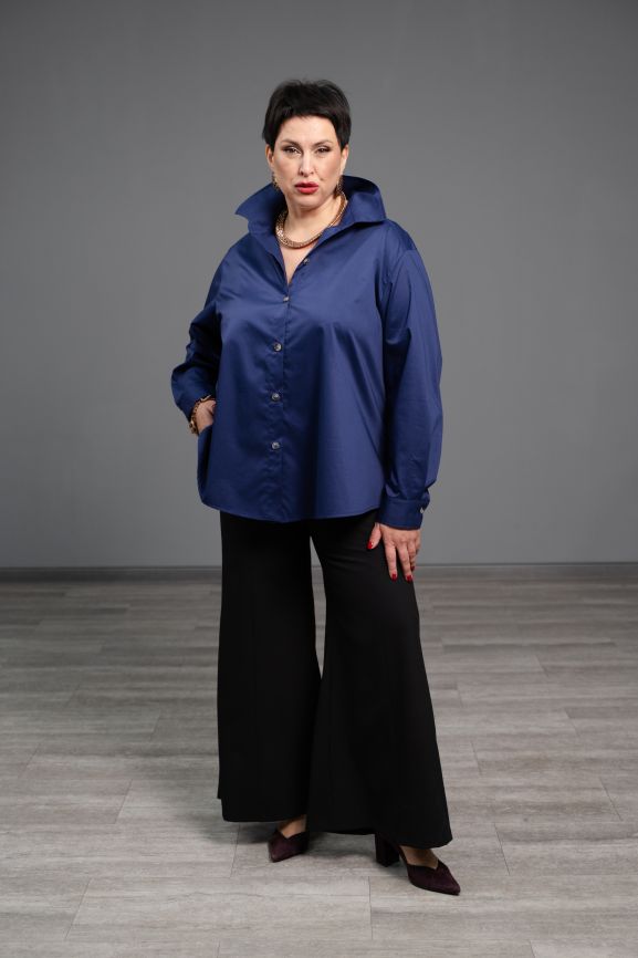 На нашей рубашке есть нагрудная вытачка, которая позволяет не просто вместиться груди, но и правильно подчеркнуть талию и за счет ассимметричного создать не только правильные пропорции вашего тела, но обеспечить удобство ношения изделия!
