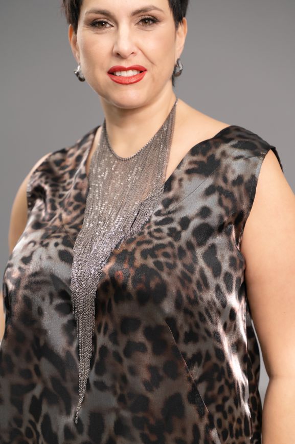 Параметры модели на фото: объем груди 117 см, объем талии 98 см, объем бедер 112 см, рост 168 см
