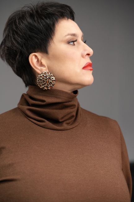 Высота горловины подойдет для любой длины шеи, при этом она не будет казаться короче. Также горловина не изменяет пропорций лица.