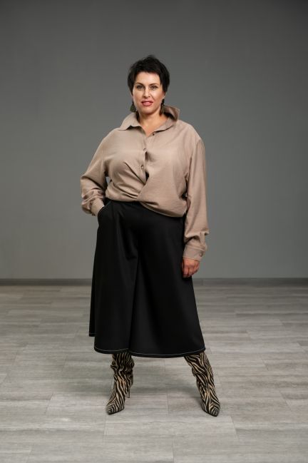 Не узкие, не широкие - идеально выверенные пропорции специально для женщин роскошных форм! Кокетка и резинка пояса очень комфортны при колебаниях веса. Центральный вертикальный шов на передних половинках брюк вытягивает силуэт.
