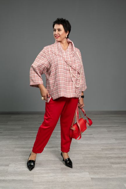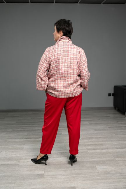 Образ: свитшот с красным принтом твид и красные брюки
