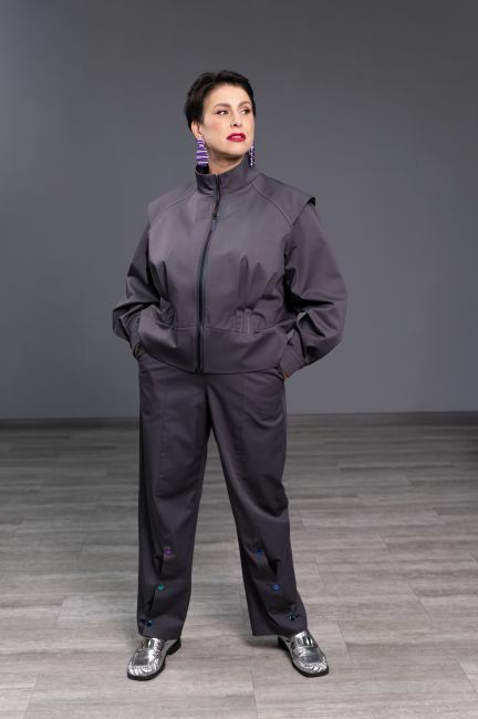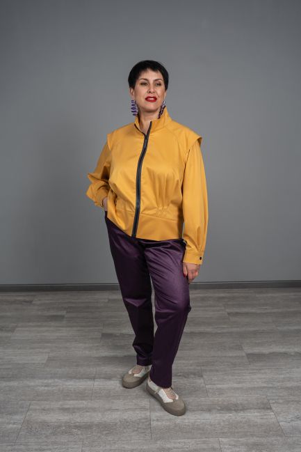 Образ: бомбер горчица из поливискозы и джинсы фиолетовые