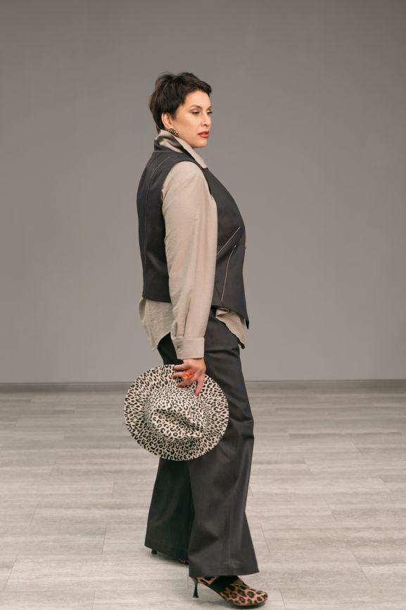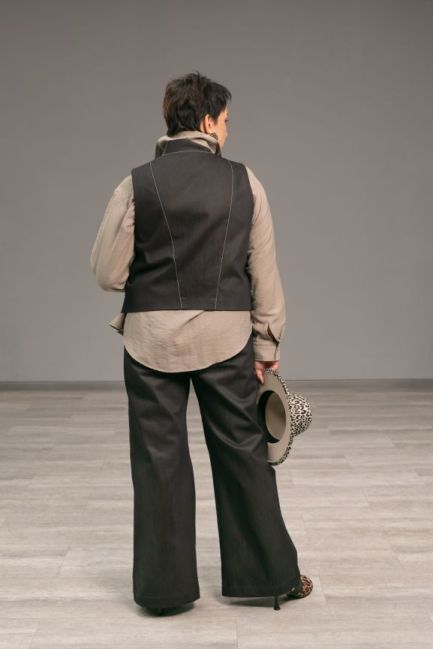 Образ: жилет, рубашка мокко и брюки-трубы