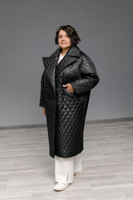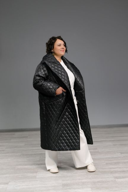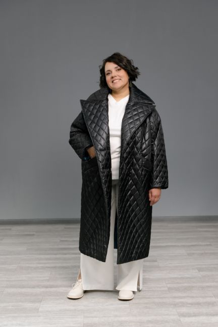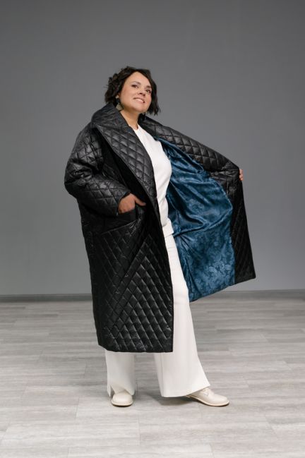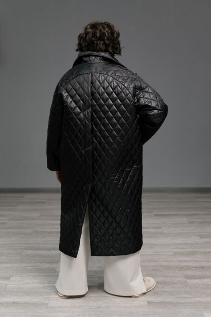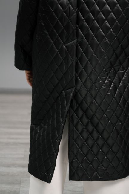 Полотно трехслойное с водоотталкивающей пропиткой. Курточная стежка на синтепоне. Изнаночная сторона верхнего слоя имеет теплосберегающий эффект за счет фольгированного напыления. Пальто комфортно носить до температуры в минус 10 градусов.