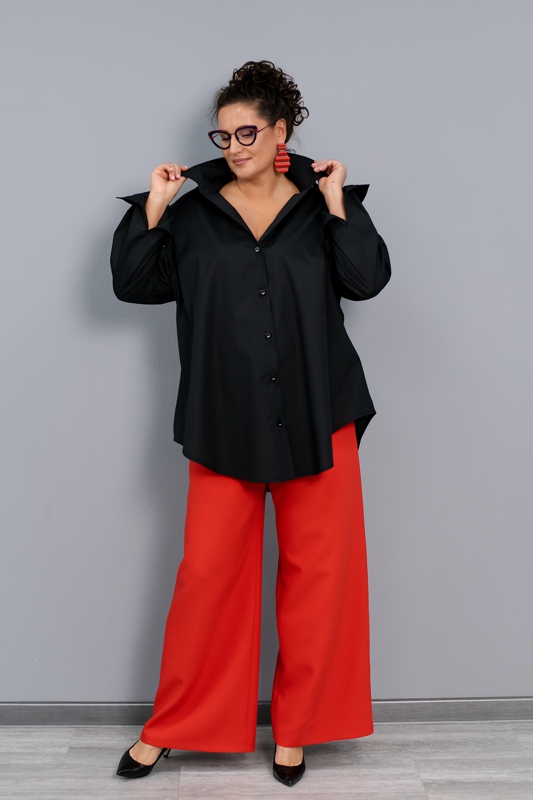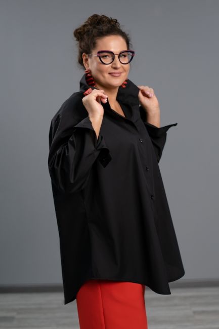 На нашей рубашке есть нагрудная вытачка, которая позволяет не просто вместиться груди, но и правильно подчеркнуть талию и за счет ассимметричного создать не только правильные пропорции вашего тела, но обеспечить удобство ношения изделия!