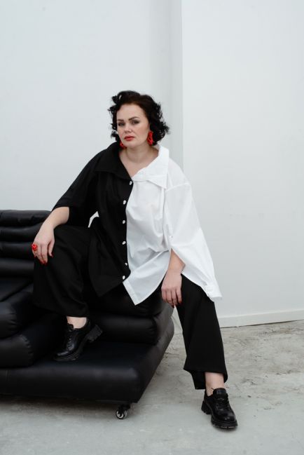 Дополнительно вы можете приобрести половину рубашки любой расцветки (из предложенных вариантов черного, белого, желтого и бежевого) в комплект, стоимость одной части изделия - 3240 рублей
