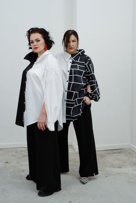 - Рубашка уплощенного кроя (по мужскому типу, то есть не выделяющая объем женской груди)