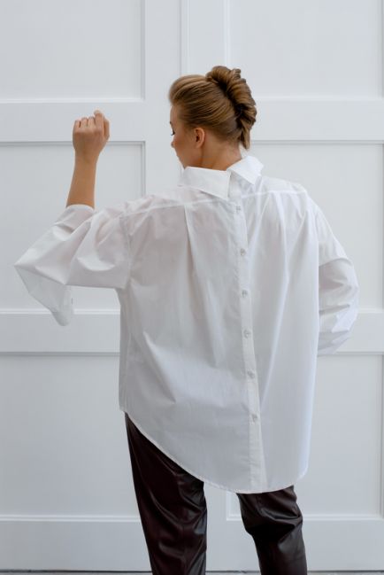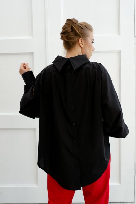 - Можно застегивать рубашку до самого верха или раскрывать зону декольте/часть спины