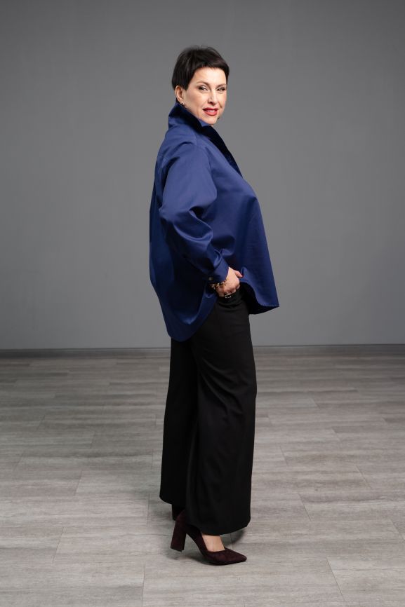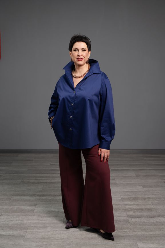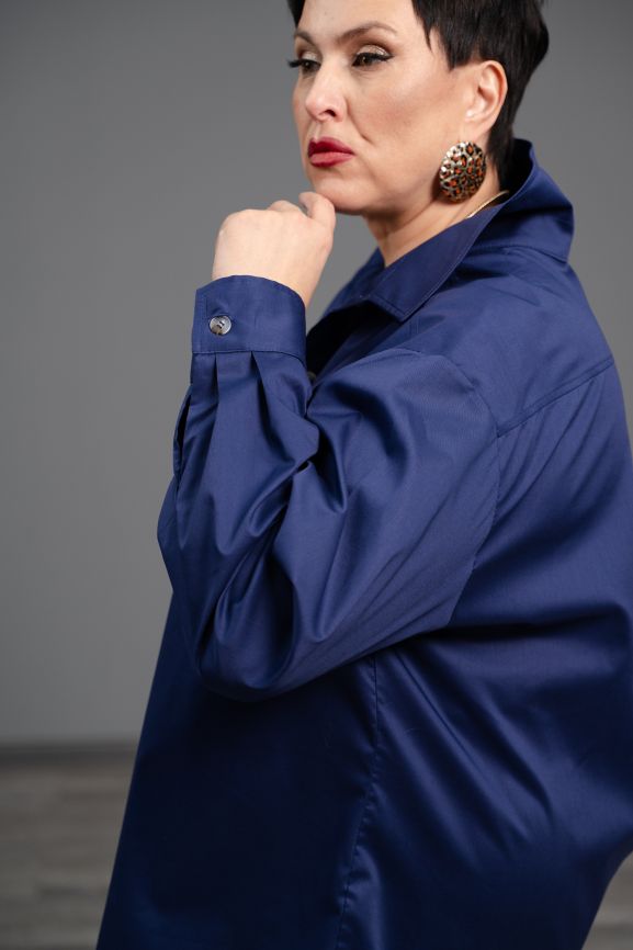 На нашей рубашке есть нагрудная вытачка, которая позволяет не просто вместиться груди, но и правильно подчеркнуть талию и за счет ассимметричного создать не только правильные пропорции вашего тела, но обеспечить удобство ношения изделия!