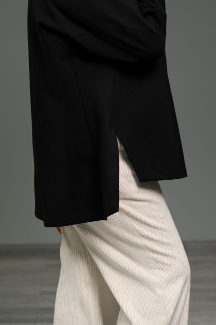 - Разрезы по бокам позволяют удобно садиться свитшоту на широкие бедра