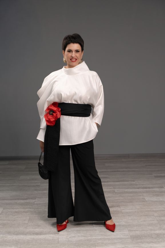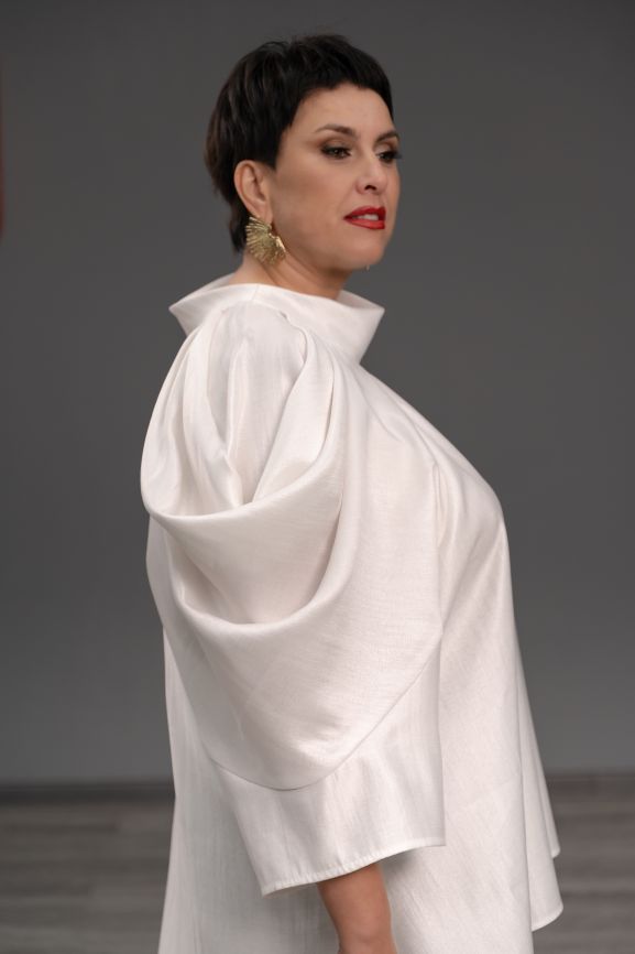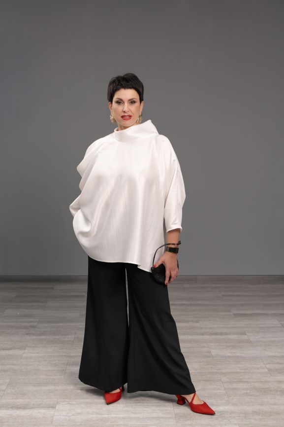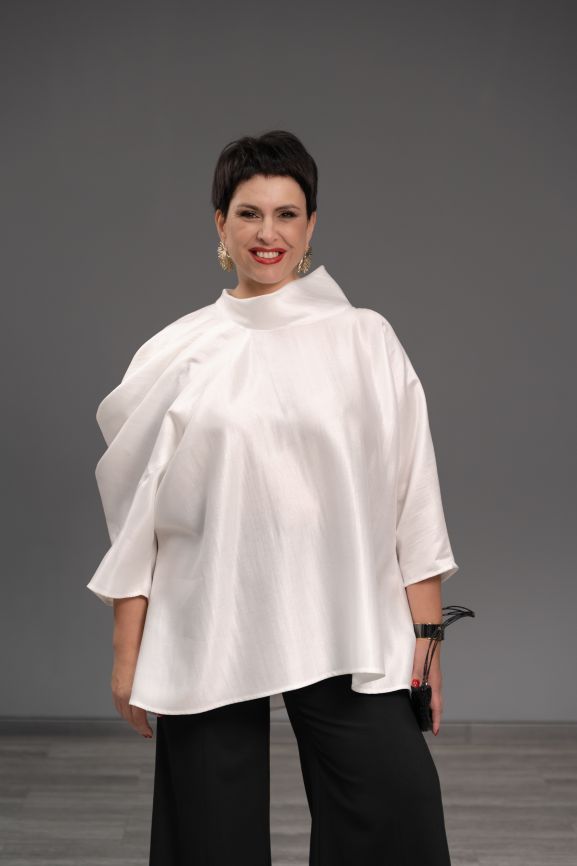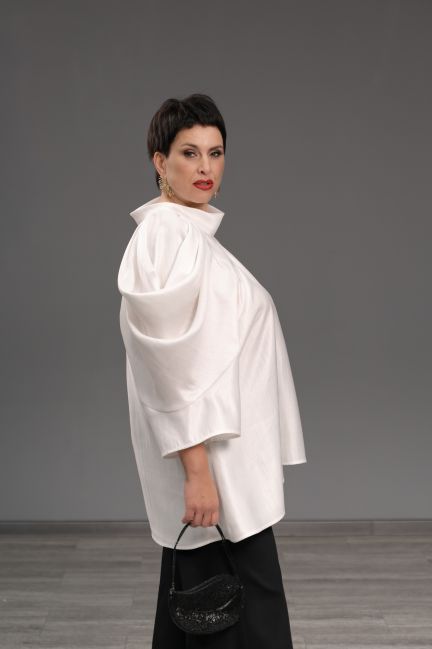 Блуза с объемной драпировкой белая